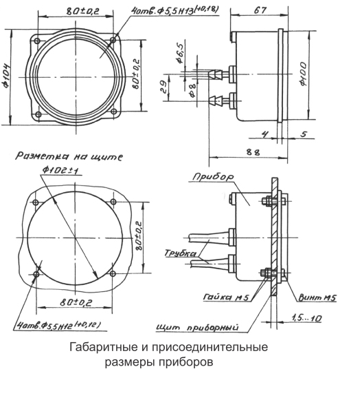 Предельно допустимое рабочее давление (для данных тягомеров, напоромеров, тягонапоромеров) не должна превышать диапазона показаний. При превышении давления мембранная коробка может выйти из строя.