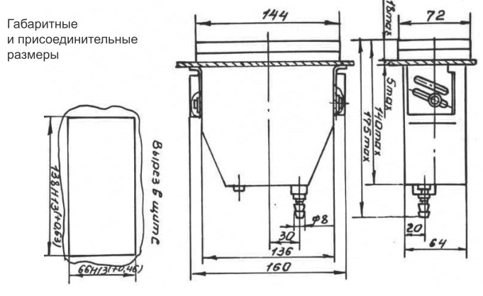 Габаритные размеры: 72х144х175 мм (вырез в щите - 66х138 мм).