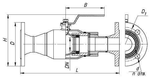 DN, мм | D, мм | D1,мм | d, мм | n | L, мм | B, мм | H, мм | Масса, кг | ||||||