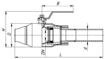 DN, мм | d, мм | D, мм | L, мм | B, мм | H, мм | Масса, кг |